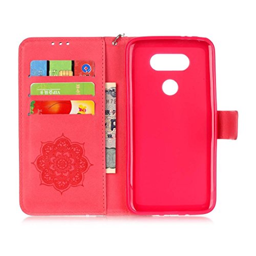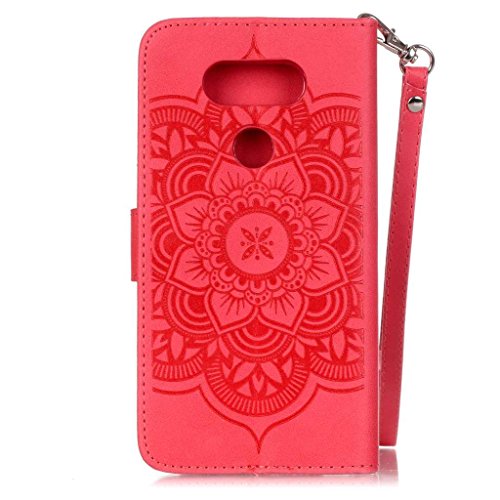 UNEXTATI LG G5 ケース ダイヤモンド 手帳型ケース カバー カード収納 ストラップ 付き LG G5 用 Case Cover (レッド)