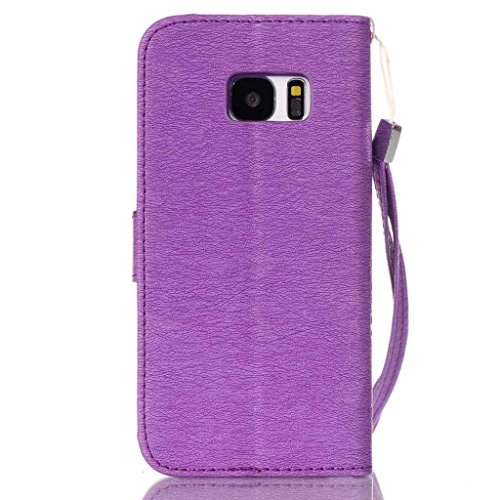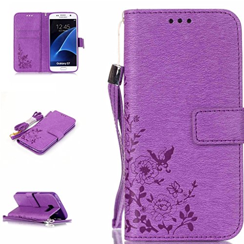 UNEXTATI Galaxy S7 ケース 高品質 PUレザー 手帳型ケース 衝撃吸収 カバー カード収納 全面保護 Samsung GalaxyS7 用 Case Cover (紫色)