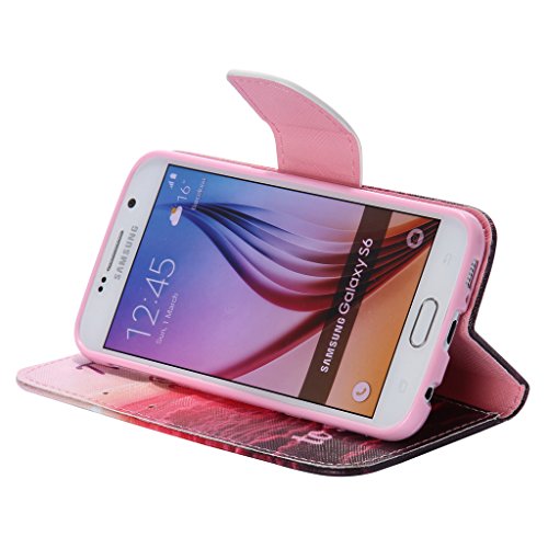UNEXTATI Galaxy S6 Edge ケース 高級 合皮レザー 手帳型 ケース カバー カードホルダー スタンド マグネット開閉式 付き Samsung Galaxy S6 Edgeケース Case (P9 レッド)