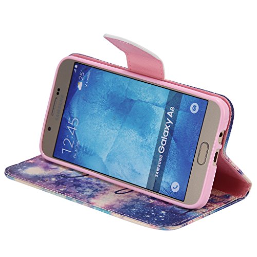 UNEXTATI Galaxy A8 ケース 高級 合皮レザー 手帳型 ケース カバー カードホルダー スタンド マグネット開閉式 付き Samsung Galaxy A8 ケース Case (P5 紫色)