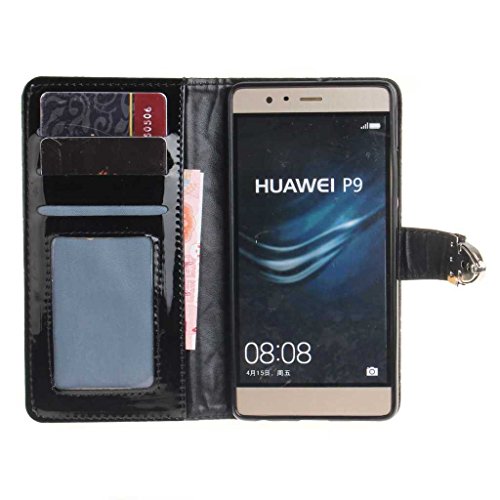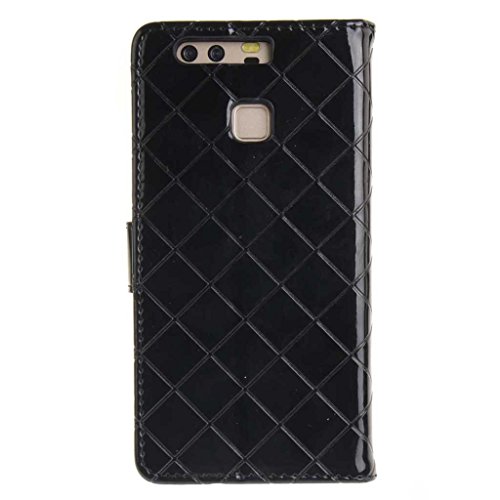 Huawei P9 ケース UNEXTATI 手帳型ケース 液晶保護 カバー カード収納 スタンド機能 付き Huawei P9 用 高品質 PUレザー ケース Case Cover (P3 ブラック)