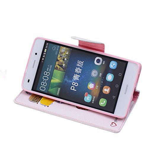 UNEXTATI Huawei P8 Lite 対応 ケース 全面保護 高品質 レザー 手帳型ケース カバー カード収納 スタンド機能 マグネット開閉式 P8 Lite用 Case (ピンク #1)