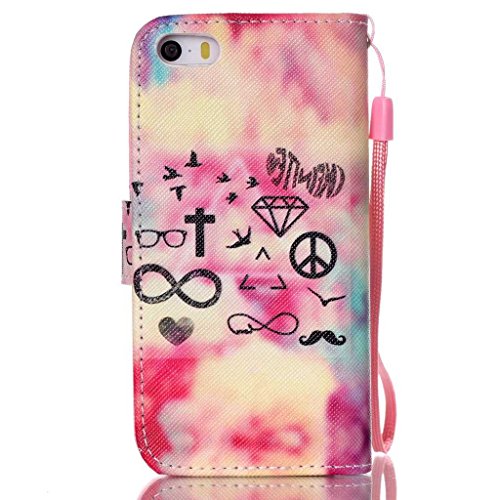 UNEXTATI iPhone SE ケース 手帳型ケース カバー ウォレット型ケース 高品質 PUレザー 収納 耐衝撃 全面保護 Apple iPhone SEケース Case (ピンク, P9)