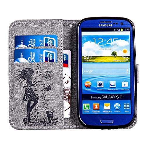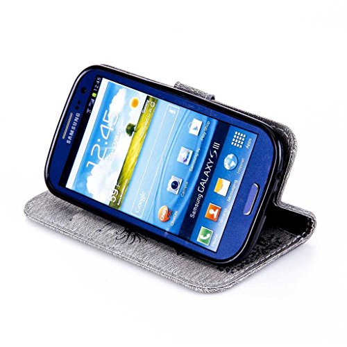 Samsung Galaxy S3 ケース マグネット式 手帳型 耐衝撃 保護ケース スタンド機能付き 防塵 財布型 プロテクター Samsung Galaxy S3 カバー (P5 グレー)