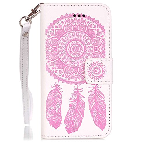 UNEXTATI iPhone SE ケース PUレザー 手帳型ケース カバー カード収納 ストラップ 付き Apple iPhone SE 用 Case Cover (ピンク #2)