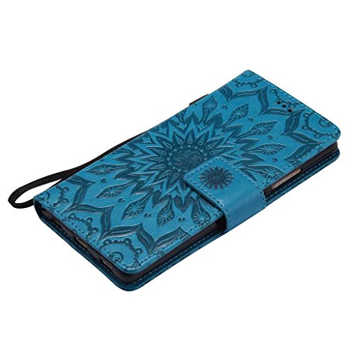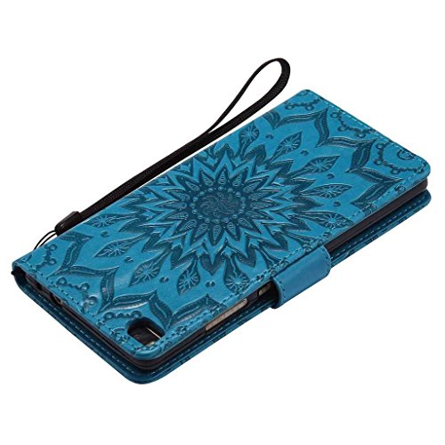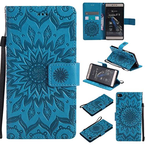 Huawei P8 ケース 高品質 PU手帳型 耐摩擦 全面保護ケース カード収納 スタンド機能 財布型 Huawei P8 用 ケース (P6 ブルー)