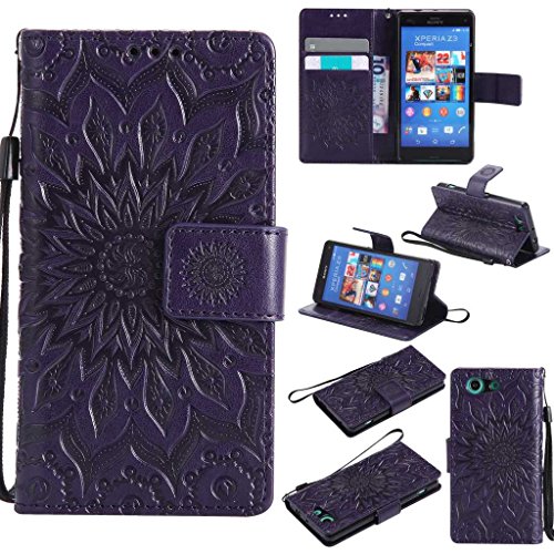 Sony Xperia Z3 Compact ケース 高品質 PU手帳型 耐摩擦 全面保護ケース カード収納 スタンド機能 財布型 Sony Xperia Z3 Compact 用 ケース (P7 パープル)