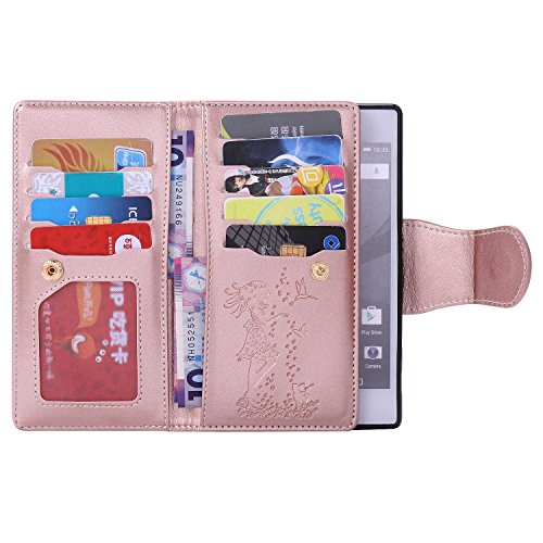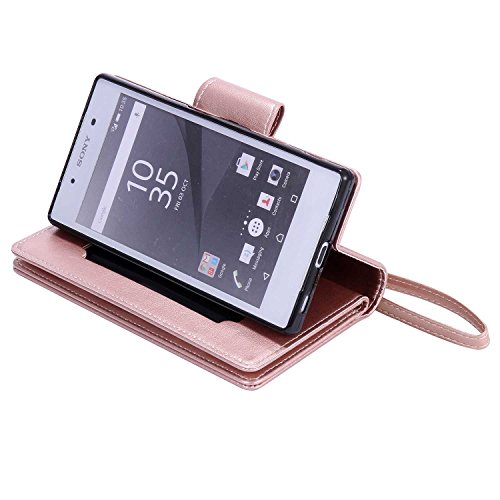 Sony Xperia Z5 ケース カード収納 手帳型 ウォレット型 スタンド機能 ケース ストラップ付き 落下防止 マグネット開閉式 財布型 カバー Sony Xperia Z5 ケース (P9 ローズゴールド)
