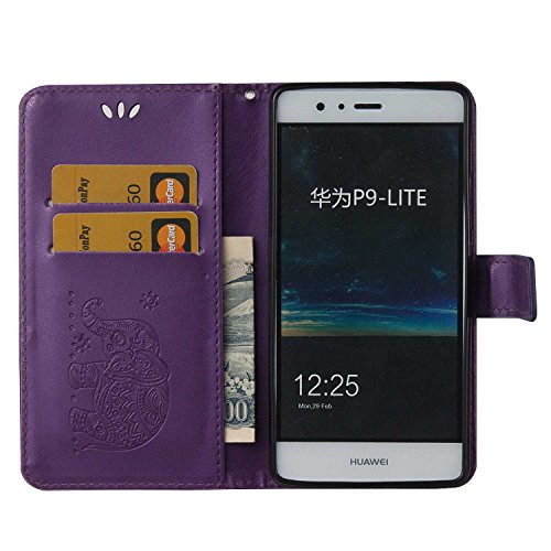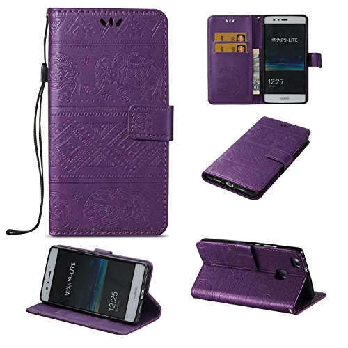 Huawei P9 Lite 手帳型 ケース カバー マグネット スタンド機能 液晶保護 防塵 ケース 耐衝撃 脱着簡単 カードポケット 高品質 カバー ウォレット型 Huawei P9 Lite ケース (P5 パープル)