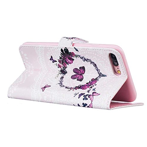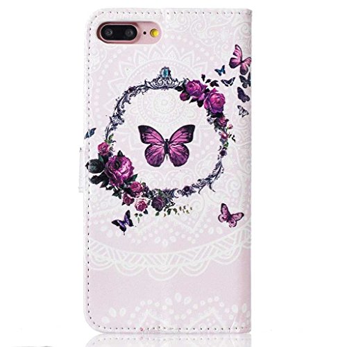 iPhone 8 Plus ケース 手帳型ケース, UNEXTATI 高品質PUレザー 財布型ケース 保護カバー カード収納 スタンド機能 マグネット開閉式 Apple iPhone 8 Plus ケース 防塵 落下防止 保護カバー Case (P5 蝶)