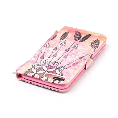 iPhone 8 Plus ケース UNEXTATI 保護カバー 手帳型 iPhone8 Plus 対応 ストラップ付き カード収納付 落下防止 衝撃吸収 財布型 ケース 携帯電話カバー (P10 ピンク)