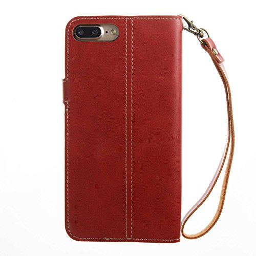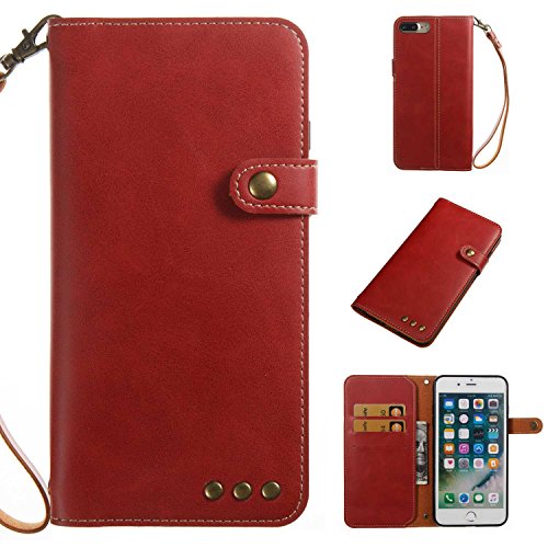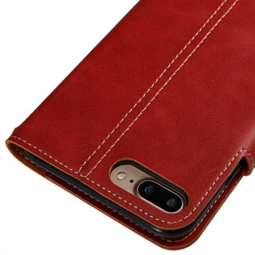 iPhone 8 Plus ケース UNEXTATI 手帳型 薄型 柔軟型 耐久 擦り傷防止 落下防止 ウォレット型 ケース カード収納付き iPhone8 Plus 対応 (P4 レッド)