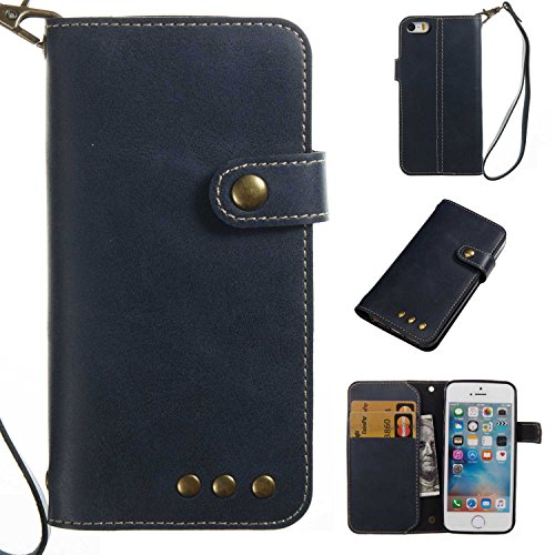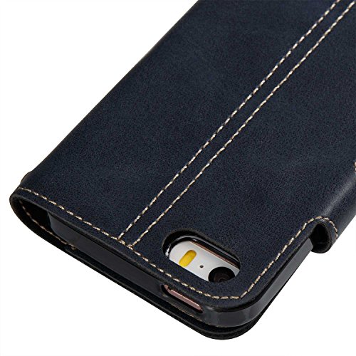 iPhone SE ケース iPhone 5 / 5s ケース UNEXTATI 手帳型 薄型 柔軟型 耐久 擦り傷防止 落下防止 ウォレット型 ケース カード収納付き iPhoneSE / iPhone5 / 5S 対応 (P3 ブルー)