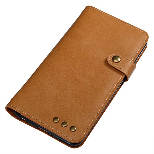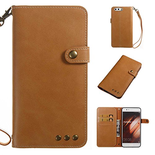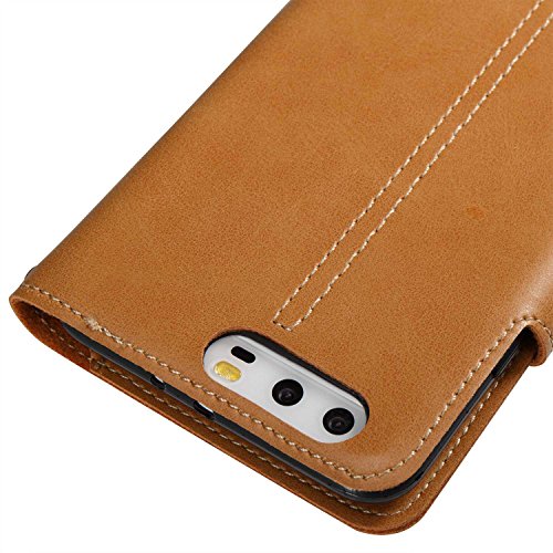 Huawei P10 Plus ケース UNEXTATI 手帳型 薄型 柔軟型 耐久 擦り傷防止 落下防止 ウォレット型 ケース カード収納付き Huawei P10 Plus 対応 (P1 ライトブラウン)