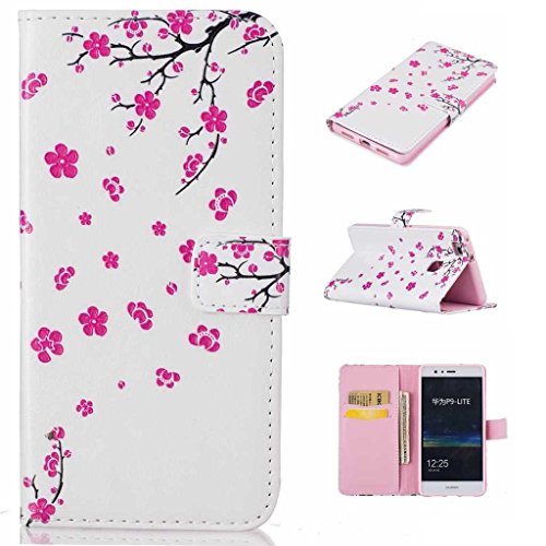 Huawei P9 Lite ケース UNEXTATI 手帳型 保護カバー 高品質 PUレザー 全面保護 防塵 カード収納 マグネット開閉式 軽量 財布型 Huawei P9 Lite ケース (P5 ピンク)