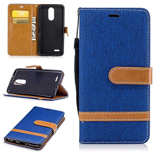 LG K8 2017 ケース 手帳型 カード収納 横置きスタンド機能付き マグネット カバー 高品質 財布型 衝撃吸収 落下防止 LG K8 2017 対応 ケース (P7 ブルー)