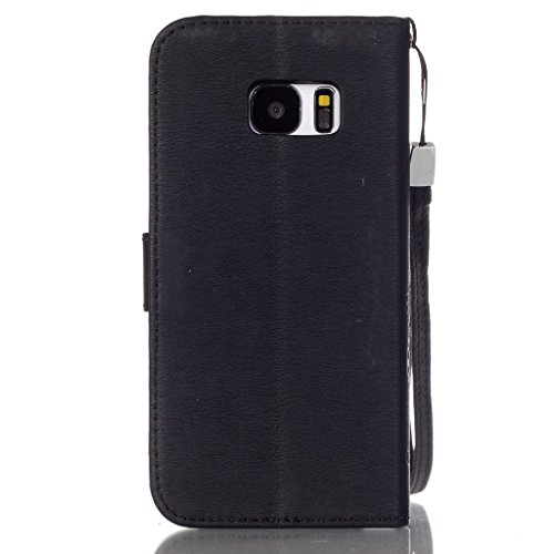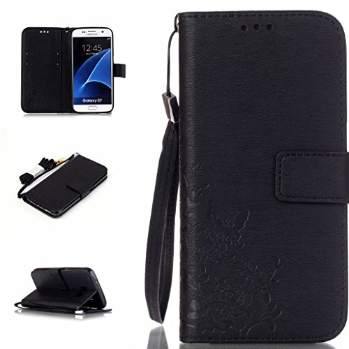 UNEXTATI Galaxy S7 ケース 高品質 PUレザー 手帳型ケース 衝撃吸収 カバー カード収納 全面保護 Samsung GalaxyS7 用 Case Cover (ブラック)