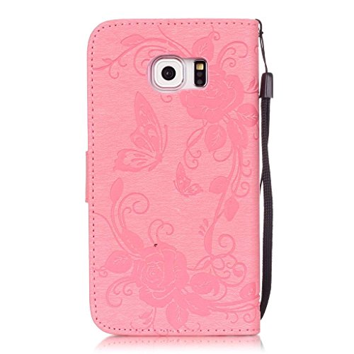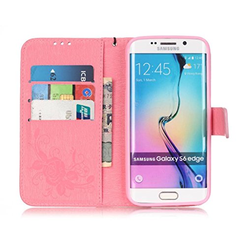 UNEXTATI Galaxy S6 Edge ケース ダイヤモンド 手帳型ケース カバー カード収納 ストラップ 付き Samsung GalaxyS6 Edge 用 Case Cover (ピンク #2)