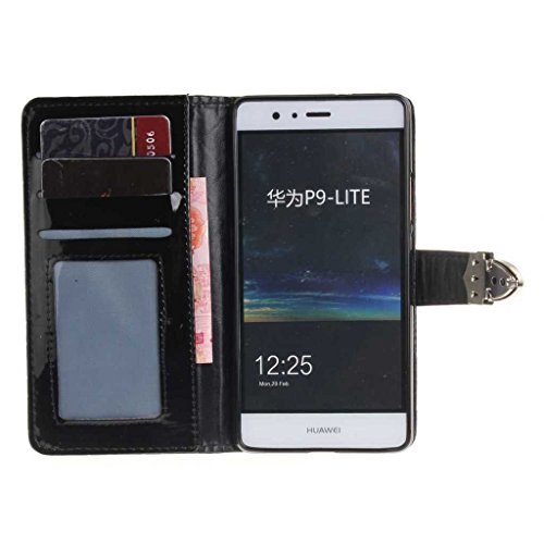 Huawei P9 Lite ケース UNEXTATI 手帳型ケース 液晶保護 カバー カード収納 スタンド機能 付き Huawei P9 Lite 用 高品質 PUレザー ケース Case Cover (P3 ブラック)