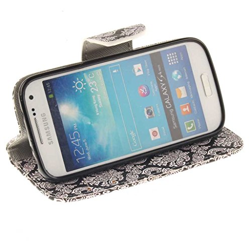 Samsung Galaxy S4 Mini ケース, UNEXTATI 手帳型ケース, Samsung Galaxy S4 Mini ケース カバー, 高品質 PUレザー 手帳型 ウォレット型 財布型 保護カバー カード収納 スタンド機能 マグネット式 (P7 ブラック)