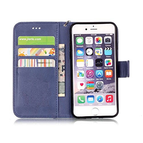 UNEXTATI iPhone 6 Plus / iPhone 6s Plus ケース ダイヤモンド 手帳型ケース カバー カード収納 ストラップ 付き Apple iPhone6 Plus / iPhone6s Plus 用 Case Cover (ブルー)