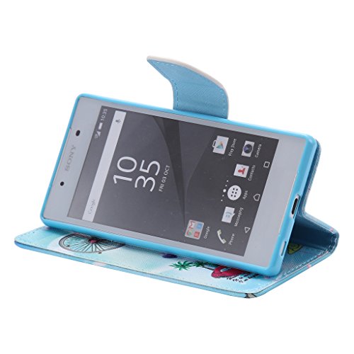 UNEXTATI Xperia Z5 ケース 高品質 合皮レザーケース マグネット 全面保護 手帳型 ケース カバー カードホルダー 付き スタンド 防塵 防水 Sony Xperia Z5 ケース Case (P1 ブルー)