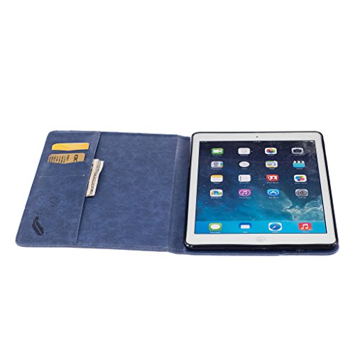 UNEXTATI iPad Air iPad 5 ケース 高品質 PUレザー 手帳型ケース 保護カバー カード収納 液晶保護 防塵 Apple iPad Air iPad 5 用 Case Cover (ブルー)