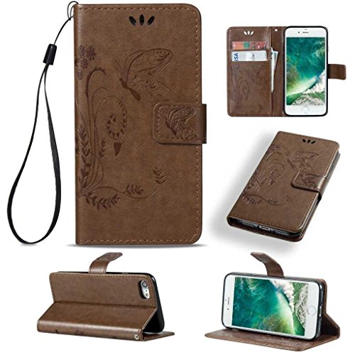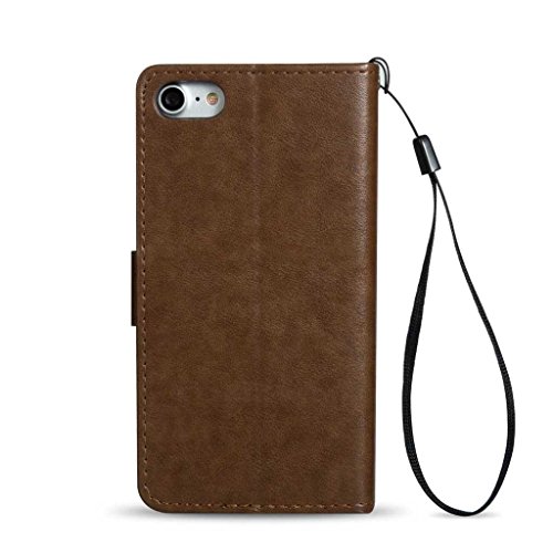 UNEXTATI iPhone 7 Plus ケース 手帳型 保護 ケース 高品質 PU レザー ストラップ付き カード収納ケース カバー 耐衝撃 スタンド機能 付き Apple iPhone 7 Plus ケース Case (P5 ブラウン)