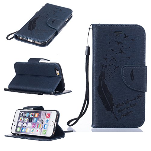 iPhone 6 / iPhone 6s ケース UNEXTATI 高品質 PUレザー 手帳型 ケース 財布型 ウォレット型 衝撃吸収 保護カバー カード収納 ホルダー ストラップ付き 横開 スタンド機能 マグネット開閉式 シリコンカバー 液晶保護 落下防止 防塵 高級 合皮レザー Apple iPhone6 / iPhone6s 用 Case Cover (P8 フェザー)
