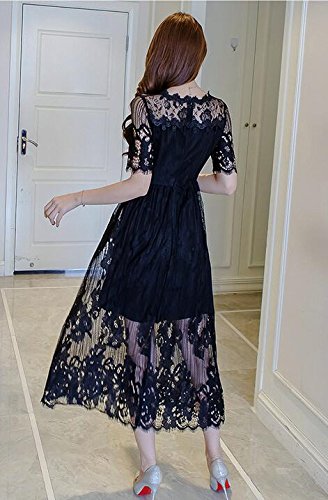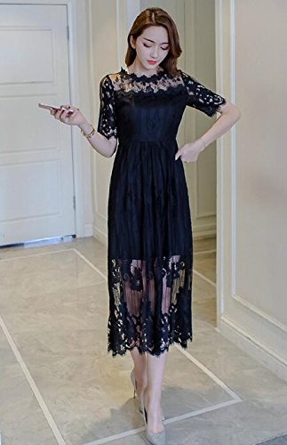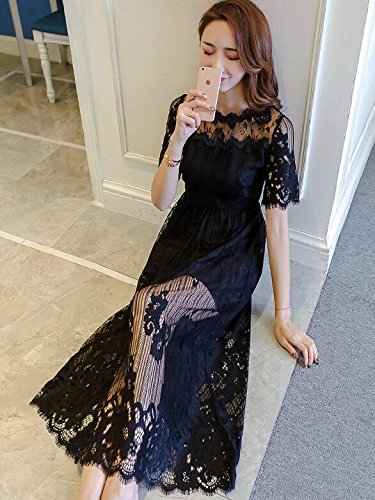 半袖ワンピース レースワンピース ブラック【L】 【5点】