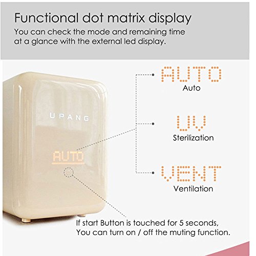 - あなたがUpangの3つの屋内ボタンの1つを押してドアを閉じると、選択されたモードがアクティブになります - 自動38分、10分の滅菌、換気10分。