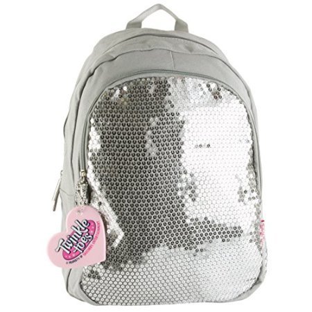 Skechers Twinkle Toes Backpack features a front zip pocket and a side stash pouch Sequin embellished front Twinkle Toes name tag Custom shoe zipper pull Main large zipper compartment Padded back Adjustable straps Straps are also decorated with sequins Top loop for easy hanging.