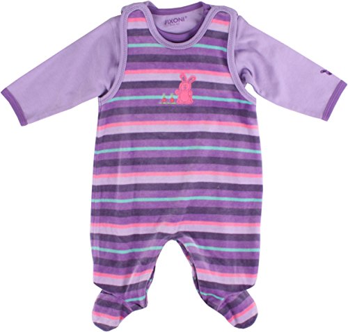 (フィクソーニ)FIXONI 北欧ブランド ベロア ボーダー ロンパースと長袖ボディスーツのセット パープル 50cm