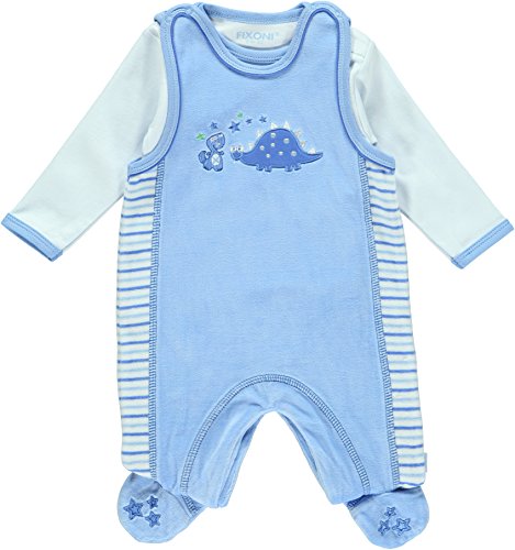 デンマークの子供服ブランドFIXONI(フィクソーニ)のロンパースと長袖ボディスーツのセットです。 画像ではボディスーツが見えませんが、当ブランドの他のボディスーツと同じスタイルです。ロンパースの素材は綿80%、ポリエステル20%のベロア素材で肌触りがとても柔らかです。胸の恐竜のデザインが可愛いです。長袖ボディスーツはお肌に優しい綿100%です。ロンパースの足先はカバーになっています。取り外しは出来ませんが、股下がスナップで開くことが出来ますので、オムツ替えは簡単です。お着替えの際は、肩の両スナップを外して、すっぽりと脱がせます。ロンパースは胸の部分恐竜のデザイン、ボーダー柄、足先も凝ったデザインです。長袖ボディスーツはミニ恐竜の総柄です。ご出産祝いのギフトなどにもかわいくラッピングしてお届けできます。【FIXONIは1965年に創業した、デンマークの子供服メーカーUTOFT KIDS GROUPのフラッグシップ(旗艦)ブランドで、ヨーロッパ各国で人気のベビー&子供服ブランドです。当アマゾンショップは、そのUTOFT KIDSの直営店です。商品価格は、基本デンマーク及び他のヨーロッパ各国で販売されている現地価格で設定しております。中間業者が入らない、メーカー直販だから可能な価格です。デンマークのメーカー直営店ですが、商品の発送及びカスタマーサービスは千葉県から全て行っていますので、安心してご購入頂けます。商品は日本全国送料無料です。ご注文頂いた商品のサイズに応じて、ヤマトメール便または佐川急便にて配送されます。】/インポートベビー服