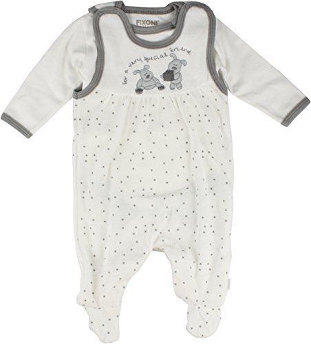 デンマークの子供服ブランドFIXONI(フィクソーニ)のロンパースと長袖ボディスーツのセットです。 画像ではボディスーツが見えませんが、当ブランドの他のボディスーツと同じスタイルです。生地の素材はロンパース、長袖ボディスーツ共にお肌に優しい綿100%です。ロンパースの足先はカバーになっています。取り外しは出来ませんが、股下がスナップで開くことが出来ますので、オムツ替えは簡単です。お着替えの際は、肩の両スナップを外して、すっぽりと脱がせます。胸に子犬のぬいぐるみのデザイン、ボディはドット柄になっています。ホワイトですが、純白ではなく、オフホワイトというナチュラルな感じの白です。ご出産祝いのギフトなどにもかわいくラッピングしてお届けできます。【FIXONIは1965年に創業した、デンマークの子供服メーカーUTOFT KIDS GROUPのフラッグシップ(旗艦)ブランドで、ヨーロッパ各国で人気のベビー&子供服ブランドです。当アマゾンショップは、そのUTOFT KIDSの直営店です。商品価格は、基本デンマーク及び他のヨーロッパ各国で販売されている現地価格で設定しております。中間業者が入らない、メーカー直販だから可能な価格です。デンマークのメーカー直営店ですが、商品の発送及びカスタマーサービスは千葉県から全て行っていますので、安心してご購入頂けます。商品は日本全国送料無料です。ご注文頂いた商品のサイズに応じて、ヤマトメール便または佐川急便にて配送されます。】/インポートベビー服