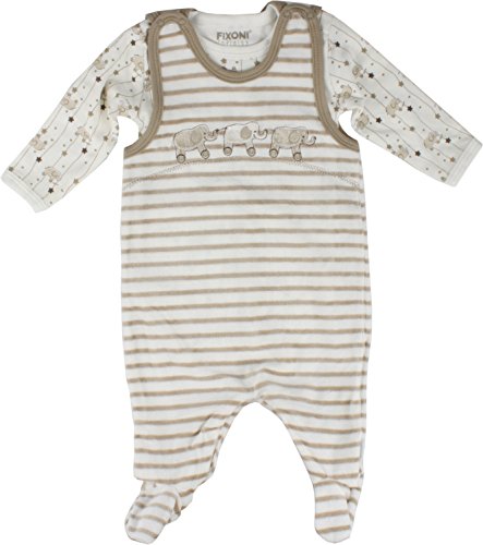 デンマークの子供服ブランドFIXONI(フィクソーニ)のロンパースと長袖ボディスーツのセットです。 画像ではボディスーツが見えませんが、当ブランドの他のボディスーツと同じスタイルです。生地の素材はロンパース、長袖ボディスーツ共にお肌に優しい綿100%です。ロンパースの足先はカバーになっています。取り外しは出来ませんが、股下がスナップで開くことが出来ますので、オムツ替えは簡単です。お着替えの際は、肩の両スナップを外して、すっぽりと脱がせます。ロンパースはボーダー柄に胸にゾウさんのデザインがあります。長袖ボディスーツは星とゾウさんの総柄デザインです。ご出産祝いのギフトなどにもかわいくラッピングしてお届けできます。【FIXONIは1965年に創業した、デンマークの子供服メーカーUTOFT KIDS GROUPのフラッグシップ(旗艦)ブランドで、ヨーロッパ各国で人気のベビー&子供服ブランドです。当アマゾンショップは、そのUTOFT KIDSの直営店です。商品価格は、基本デンマーク及び他のヨーロッパ各国で販売されている現地価格で設定しております。中間業者が入らない、メーカー直販だから可能な価格です。デンマークのメーカー直営店ですが、商品の発送及びカスタマーサービスは千葉県から全て行っていますので、安心してご購入頂けます。商品は日本全国送料無料です。ご注文頂いた商品のサイズに応じて、ヤマトメール便または佐川急便にて配送されます。】/インポートベビー服