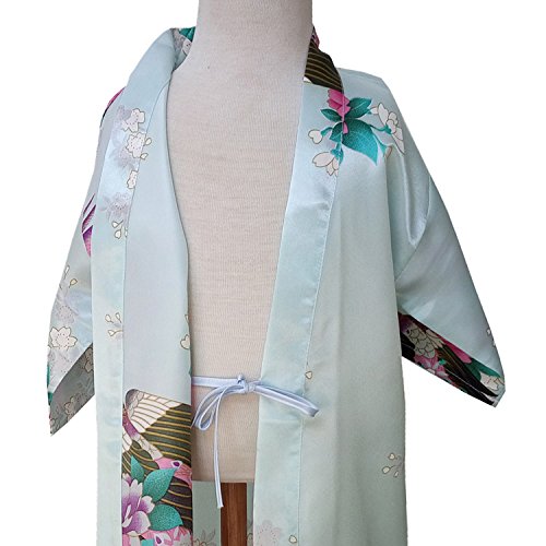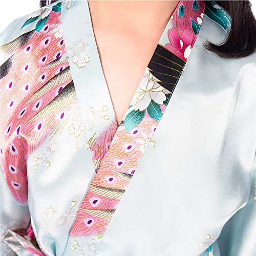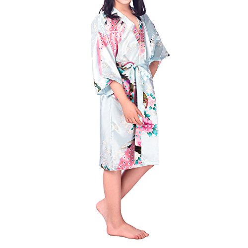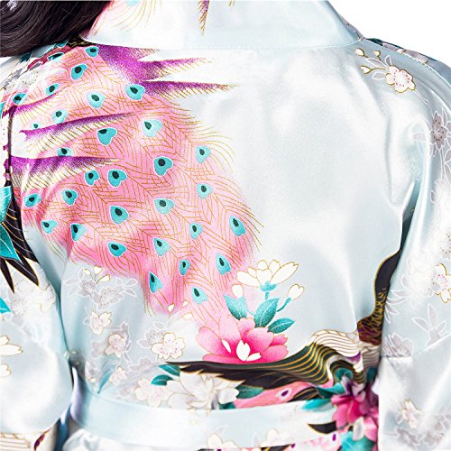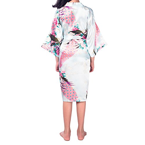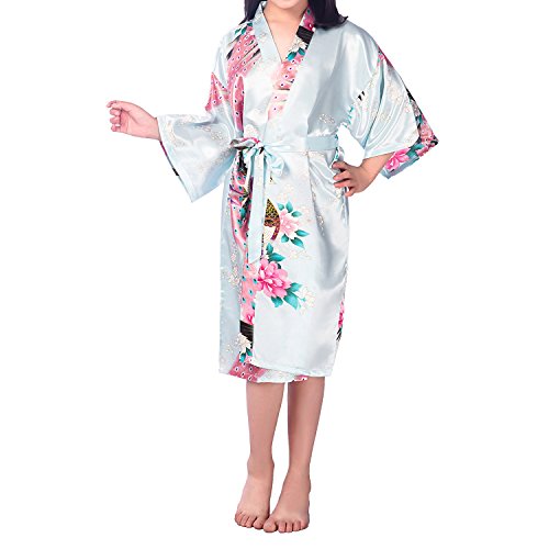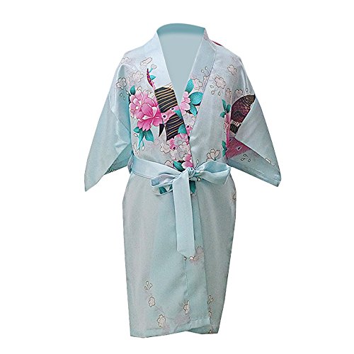 UTOVME バスローブ シルク真似 パジャマ 孔雀 模様 プリント 七分袖 カーディガン ロリ 浴衣 子供服 薄い 着物 ガール ベビー服 ガウン キッズ 和服 ライトブルー 年齢7-9歳(サイズ12)