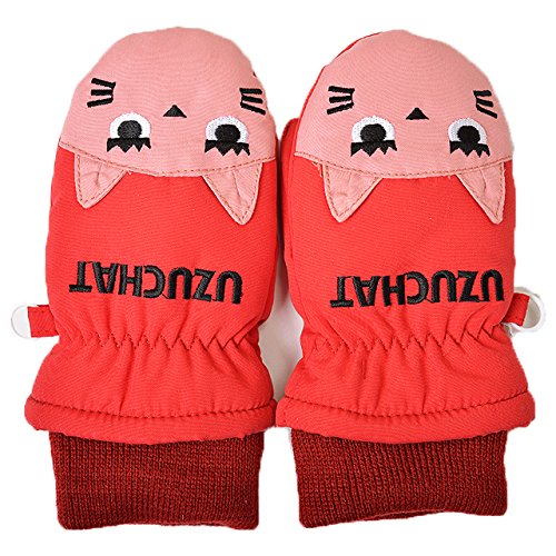 2016年 冬物 防寒 UZUCHAT 冬物 防寒 スノー手袋 ミトン グローブ レッド-ピンク◇1-2才