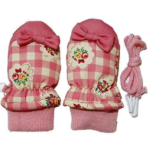 2017年 UZULAND 花チェック スノー手袋 防寒衣料 撥水加工 ミトングローブ ピンク◇1-2才寸