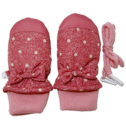 2017年 UZULAND デニムドットプリント スノー手袋 防寒衣料 撥水加工 ミトングローブ ピンク◇1-2才寸