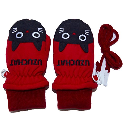 2017年 UZUCHAT 顔アップリケ スノー手袋 防寒衣料 撥水加工 ミトングローブ レッド◇3-4才寸