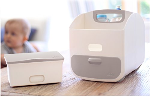 Holds an average of 8 diapers and includes a soft, easy-to-clean changing mat;Convenient window to monitor quantity of wipes;Fits standard wipes dispensers. Ubbi wipes dispenser sold separately;Drawer to store smaller items;PVC, BPA & Phthalate free