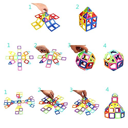 - 【収納ボックス付き】収納ボックス付きで収納や持ち運びなどとても便利で遊び終わったら綺麗に収納できます。カラーの三角形18個、カラーの四角形30個合計48ピース、頭に描いたイメージを自由にかたちにできます。説明書に組み立てる方法も記載されています。