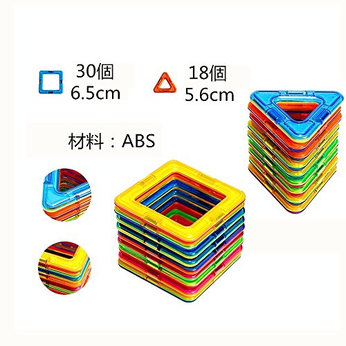 マグネットブロック 48ピースセット内容:三角形x 18個、正方形 x30個、ガイドブックx 1冊。