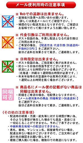 ※メール便はポスト投函のため日時指定はできません。※混雑時は到着に1週間以上かかる場合がございます。※破損や紛失の保証がありません。※Webでの追跡はできません。※送付先に番地、マンション名の記載が無い、表札を出されていない場合はお届けできませんので必ずご確認ください。