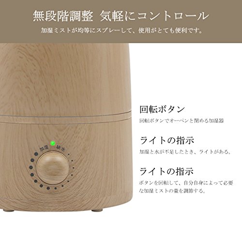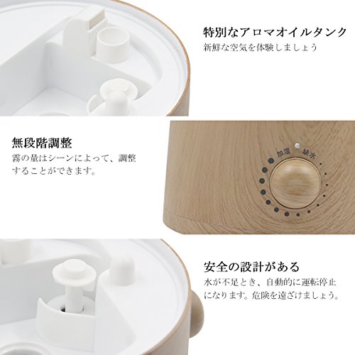 アロマディフューザー 超音波式 卓上加湿器 約1.0-2.5L 大容量 ミストモード 空焚き防止機能搭載 静音 卓上 装飾 部屋 会社 オフィス・ベッドルーム・家庭 加湿空気浄化機 木目調 (L)