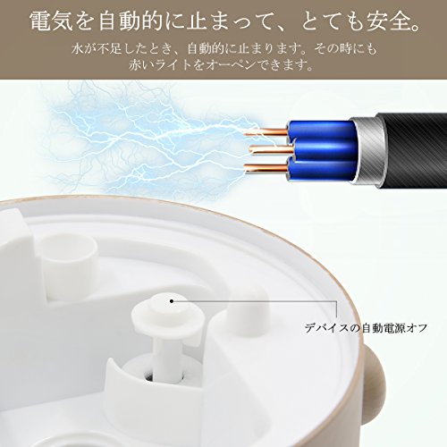 - 弊社のアロマディフューザーはデバイスの自動電源オフを付き、水不足の時、自動的に運転停止になります。シンプルながら安全安心な加湿器です。