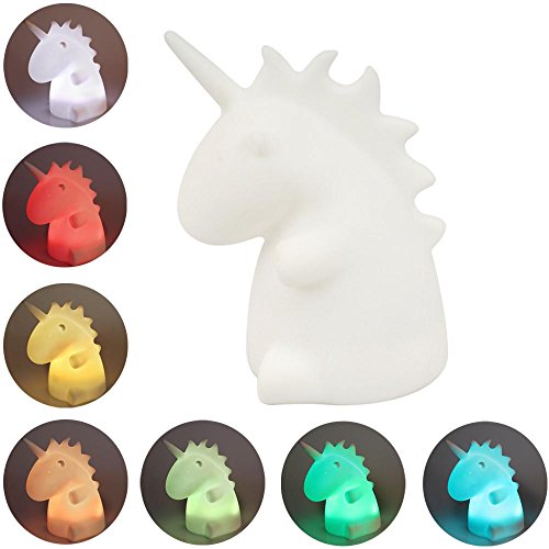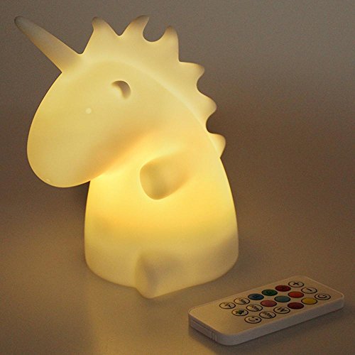 Umiweリモートコントロールユニコーンシリコン夜ライト充電式キュートLEDデスクランプwith 7-colorムード照明子供大人Friends