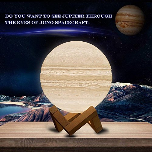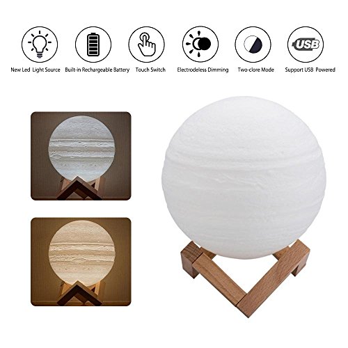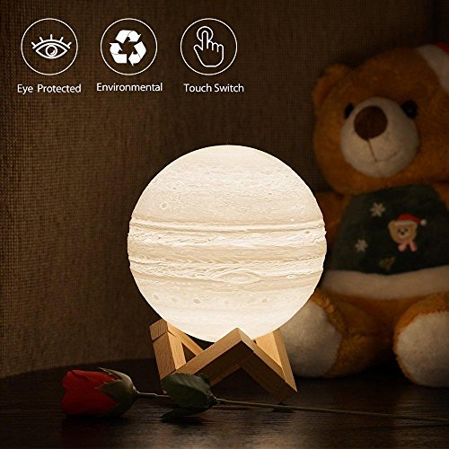Umiwe Jupiterライト、シームレス3d印刷赤ちゃんナイトライト調光機能付き2色タッチコントロール再充電USB 3d Jupiterライトwithの木製ラックテーブルホーム装飾ギフト 6192755894707