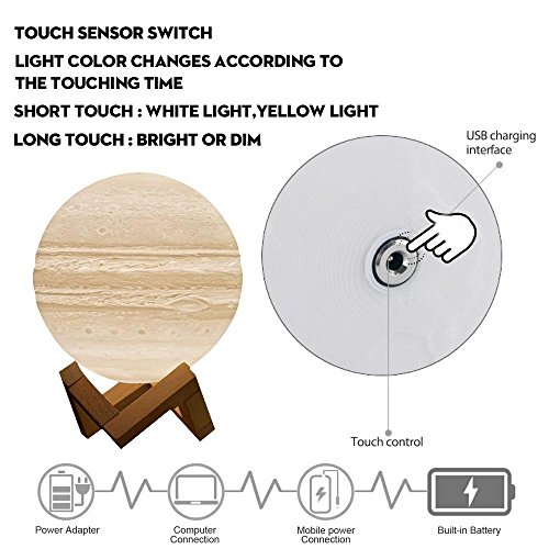 - [タッチ操作と2色の照明]: JUPITERのライトコントロールできます。シンプルなタッチコントロールデザイン、苦労をしたのも、リモートコントロールの赤ちゃんに適用するのは自由に調整できます。使用されている場合に、ホワイトとイエローの色に近いJUPITER
